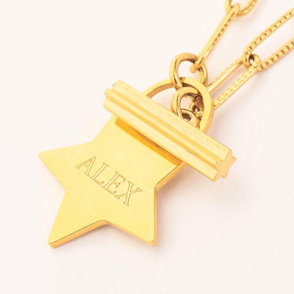 A stunning engraved necklace with star pendant and T bar clasp detail. 17cm size.