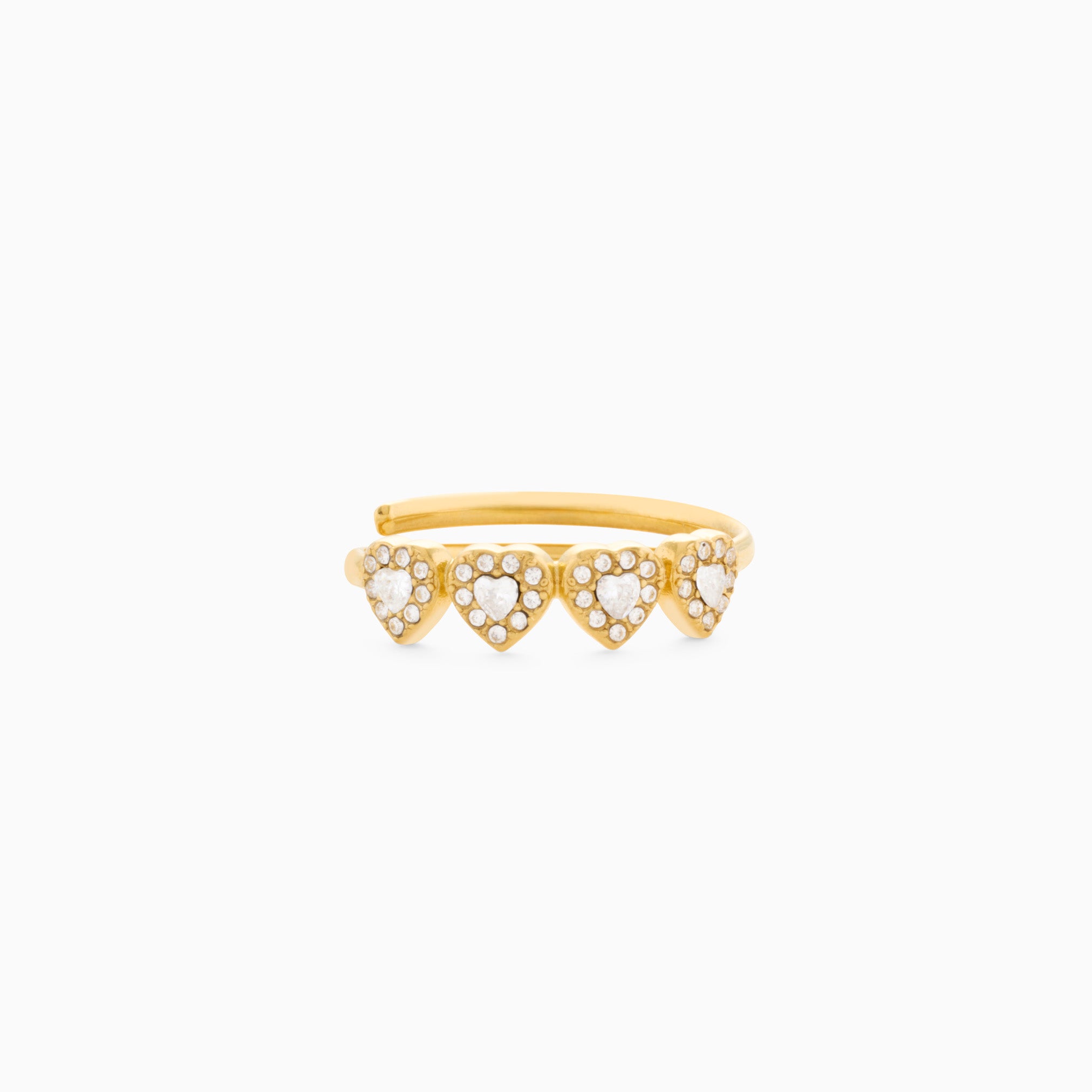 For the bonds that are intricately entwined. The Woven Hearts Adjustable Ring features a delicate, repeating pattern of hearts that flow seamlessly into one another. Representing a love that is woven into the fabric of your everyday life, this ring is a sweet and sophisticated tribute to the connections that make us who we are.Premium Stainless Steel base with a radiant 18k Gold Plating for a luxury finish. Water-resistant and tarnish-resistant—built to withstand daily wear while maintaining its golden glow.